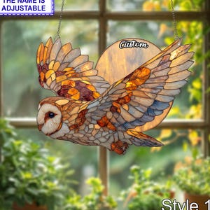 Owl and Moon Window Hanging, Acrylic Suncatcher, Acrylic Owl Ornament, Night Sky Wildlife Decor, Rustic Forest Bird Custom Gift