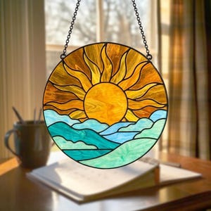 Sunrise Ocean Suncatcher, Round Sun and Wave Window Hanging, Coastal Beach Sun Catcher Decor, Summer Gift